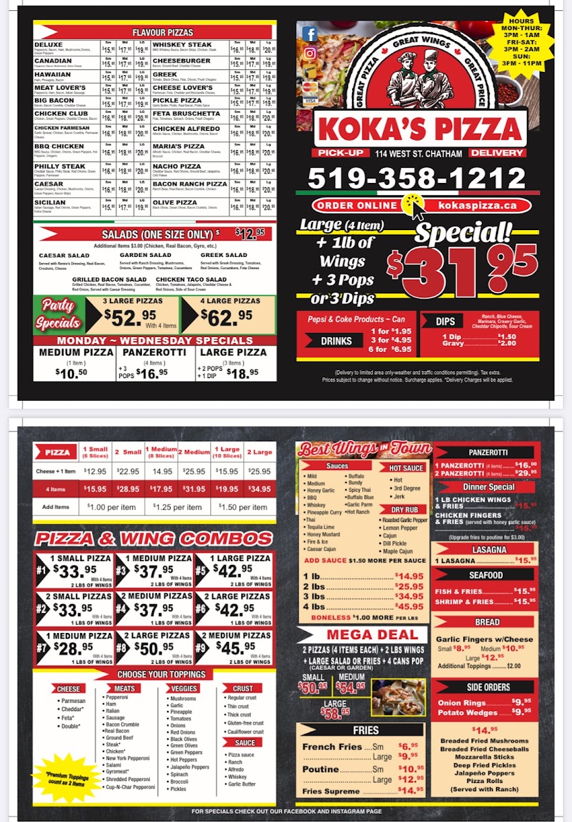 Koka’s Pizza offers a straightforward and inviting menu centered around comforting, classic pizza options alongside a variety of satisfying sides. The selection features a range of flavorful pizzas, from hearty meat lovers and savory Cajun wings to unique choices like the pickle pizza or feta bruschetta. Salads and panzerotti provide lighter, fresh alternatives, making it easy to find something for any appetite or time of day.